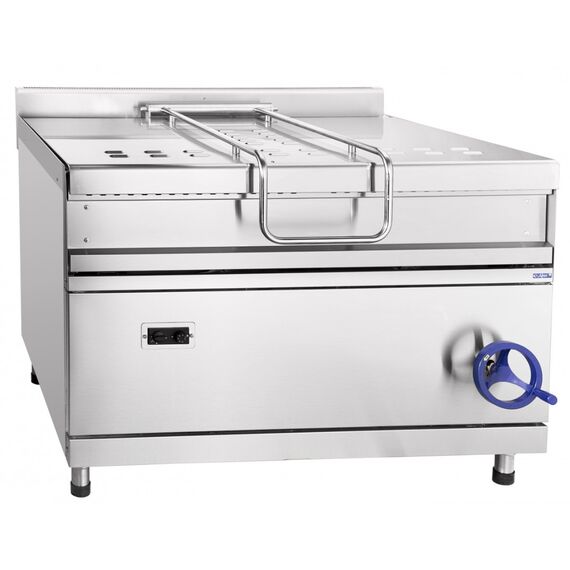 1202х1050х940 мм, Газовая сковорода ГСК-90-0,67-120, цельнотянутая чаша 1100х630х197 мм, площадь дна чаши 0,67 м2, 120 л, опрокидываемая, 900 серия, +100…+340 С, газ-контроль, 2 горелки, 32 кВт