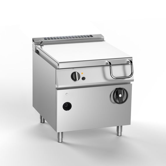 Газовая опрокидываемая сковорода серии 700 SLBPG87MI вместимостью 60 л, предназначена для жарки продуктов основным способом, пассерования овощей, тушения, а также припускания мясных, рыбных и овощных изделий на предприятиях общественного питания, торговли, в столовых и кафе, как самостоятельно, так и в составе технологических линий.Конструкция сковороды выполнена из нержавеющей стали AISI 304. Толщина металла 2 мм. Особенности:• Плавная регулировка температуры жарочной поверхности в диапазоне 100-280 С. • Нагрев осуществляется ТЭНами, равномерно распределяющими тепло по поверхности чаши. • Дно чаши толщиной 12 мм позволяет надежно удерживать тепло в режиме приготовления. • Ручной механизм подъема и опускания чаши обеспечивает удобство опорожнения и обслуживания сковороды. • Крышка предотвращает потерю тепла и фиксируется в любом положении. • Регулируемые по высоте ножкиГазовая мощность опрокидываемой сковороды 14 кВт. Габариты 800х730х900 мм.