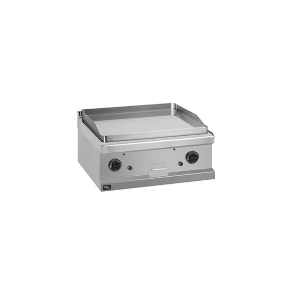 Газовая открытая сковорода (жарочная поверхность) 700 серии APTG-77TLC предназначена для обжарки мяса, рыбы, котлет и овощей.Столешница, вентиляционная решетка и передняя панель сковороды выполнены из нержавеющей стали AISI 304, боковые и задняя панели - из нержавеющей стали AISI 430. Толщина металла 1 мм.Модель оснащена гладкой хромированной жарочной поверхностью из конструкционной стали, размером 650х570 мм и толщиной 15 мм, с двумя независимыми зонами нагрева.Для защиты от брызг присутствует борт из нержавеющей стали, толщиной 3 мм.У жарочной поверхности предусмотрен небольшой уклон для облегчения очистки и слива излишков жира в съемный жиросборник из нержавеющей стали, объемом 2 литра.Данная модель является настольной.Открытая сковорода оснащена газовыми горелками из нержавеющей стали с системой стабилизации пламени. Модель настроена на подключение к магистральному газу. Форсунки для подключения к баллонному газу в комплекте.Данную модель можно использовать как самостоятельно, так и в составе технологичес