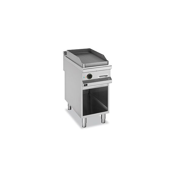 Электрическая открытая сковорода (жарочная поверхность) 900 серии APTE-49PR предназначена для обжарки мяса, рыбы, котлет и овощей.Столешница, вентиляционная решетка и передняя панель сковороды выполнены из нержавеющей стали AISI 304, боковые и задняя панели - из нержавеющей стали AISI 430. Толщина металла 1 мм.Модель оснащена рифленой жарочной поверхностью из конструкционной стали, толщиной 15 мм, с одной зоной нагрева, размером 380х720 мм. Нагрев производится армированными нагревательными элементами из нержавеющей стали.Для защиты от брызг присутствует борт из нержавеющей стали, толщиной 3 мм.У жарочной поверхности предусмотрен небольшой уклон для облегчения очистки и слива излишков жира в съемный жиросборник из нержавеющей стали, объемом 2 литра.Данная модель укомплектована открытой подставкой с регулируемыми ножками.Данную модель можно использовать как самостоятельно, так и в составе технологической линии.Открытая сковорода работает от сети с напряжением 380В, потребляемая мощность 6 кВт. Габариты 400х900х