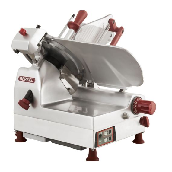 Диаметр ножа 300 мм, Передача ремень,толщина нарезки 0-14 мм,без подставки, рез 210 x 170 мм. Опции: счетчик слайсов с селектором и насадка для нарезки овощей диаметром 135 мм.