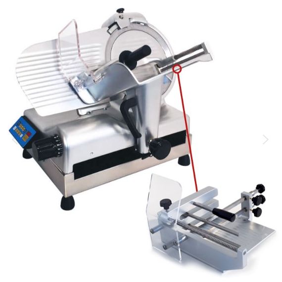 Габариты 685x540x545 мм. Диаметр ножа 300 мм, рез 280 X 220мм. Толщина нарезки регулируется, до 15 мм. Вертикальный слайсер для нарезки мяса, сыра, колбасных изделий и других продуктов питания. Толщина нарезки 0-15 мм. Слайсер для профессионального использования на предприятиях общественного питания. Нож из хромированной стали, корпус из лакированного алюминия с пластиковыми деталями. Основания - нерж. сталь. Электронная панель упарвления, 3 скорости. Ременной привод