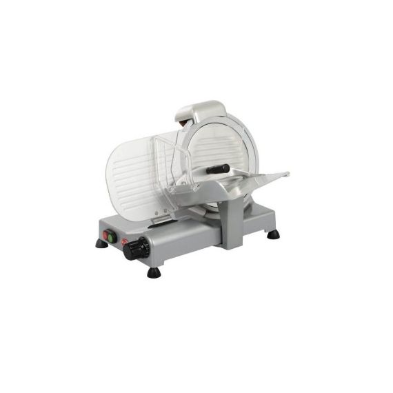 Габариты 520 x 450 x H 360 мм. Диаметр ножа 275 мм, рез 230x190 мм. Полуавтоматический слайсер для нарезки мяса, сыра, колбасных изделий и других продуктов питания. Толщина нарезки 0-14?16 мм. Слайсер для профессионального использования на предприятиях общественного питания. Нож из хромированной стали, корпус из лакированного алюминия с пластиковыми деталями. Профессиональное исполнение PROF CEV