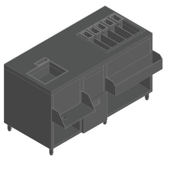 1500х900х850мм, НБМКС-15/6ПК (+100 столешн.) модуль барный коктейльная станция без борта, теплоиз.ванна, мойка, полка, карман, 2ящ., вертуш., 1500х900х850