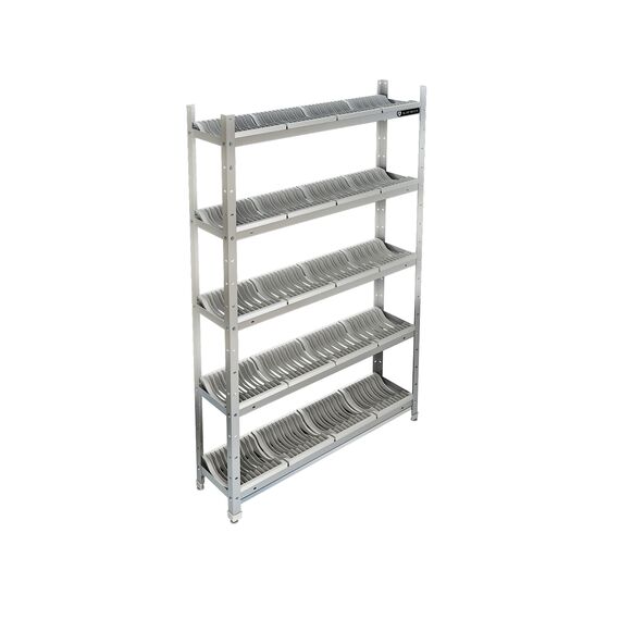 900х300х1830, разборный, стойки из оцинкованного уголка, 5 полок из стали AISI 430 c кассетами из пластмассы на 200 тар. Поддон из стали AISI 304