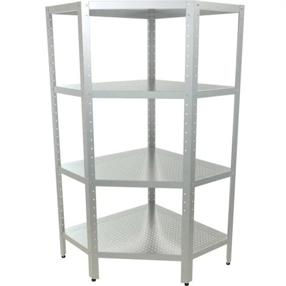 1000х700х1600мм, Стеллаж перфорированный угловой разборный (4 сплошные полки - нерж. сталь. aisi 430, каркас уголок оцинк. сталь)