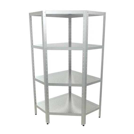 800х1000х1800мм, Стеллаж перфорированный угловой разборный (4 сплошные полки - нерж. сталь. aisi 430, каркас уголок нерж. сталь aisi 430)
