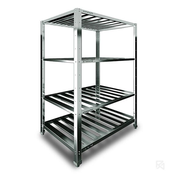 Стеллаж Restoinox СТПР-18/6-ЭЦ используется для хранения посуды, упакованных продуктов и различного кухонного инвентаря на предприятиях общественного питания в холодильных камерах, моечных отделениях и в складских помещениях.ОСОБЕННОСТИ:4 полки - из нержавеющей стали Aisi 430 толщиной 0.8 ммCтойки каркаса - из оцинкованной стали (уголок 40х40 мм) толщиной 1.6 ммШаг регулировки высоты полок: 150 ммПолки-решёткиРегулируемые по высоте ножкиОтверстия в каркасе под дополнительные полкиМаксимальная нагрузка до 50 кг на один ярус