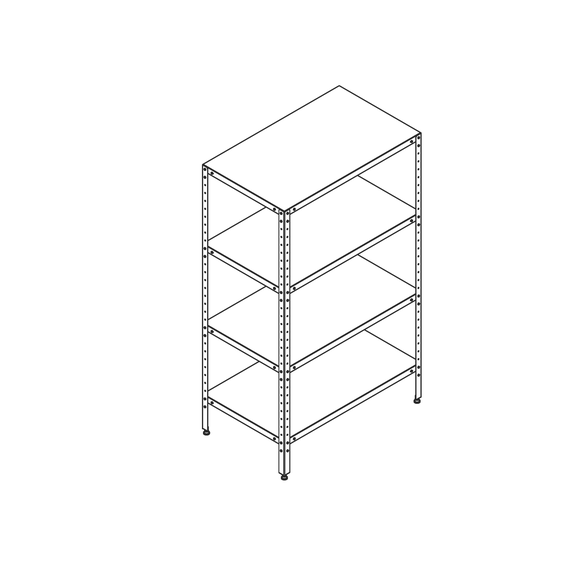 Серия СКЦР 1: разборная конструкция, 4 сплошные полки из нержавеющей стали марки AISI 430, толщиной 0,8 мм. Стойки из оцинкованной стали толщиной 1,5 мм имеют перфорацию с шагом 50 мм и регулируемые по высоте опоры.