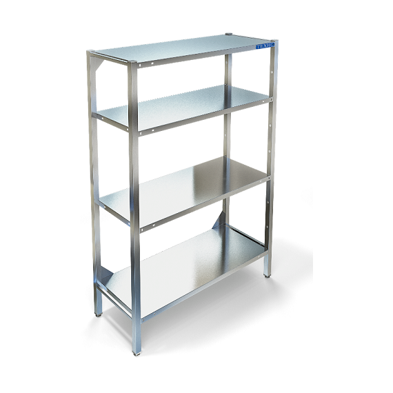 1090х310х1820мм, Стеллаж технологический разборный, стойки из трубы 40х20 нержавеющей стали марки AISI 304 толщиной 1,2мм. Четыре сплошные полки из нержавеющей стали марки AISI 304 толщиной 0,8мм. Расстояние между полками регулируемое с шагом 120мм. Регулируемые опоры. Стеллаж поставляется в разобранном виде.