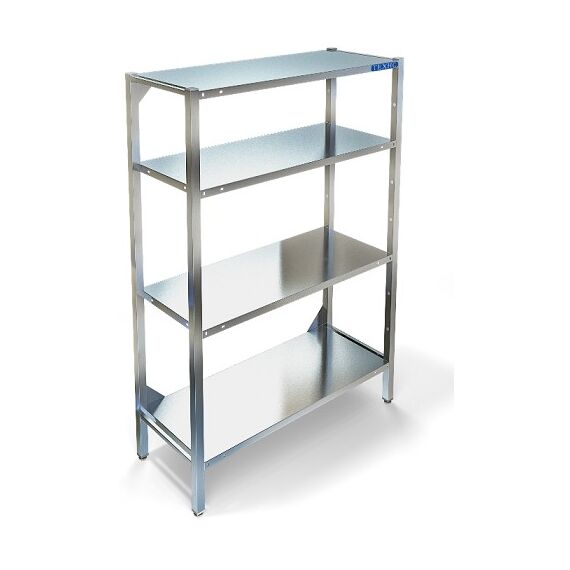 790х510х1820мм, Стеллаж технологический разборный, стойки из трубы 40х20 нержавеющей стали марки AISI 430 толщиной 1,2мм. Четыре сплошные полки из нержавеющей стали марки AISI 304 толщиной 0,8мм. Расстояние между полками регулируемое с шагом 120мм. Регулируемые опоры. Стеллаж поставляется в разобранном виде.