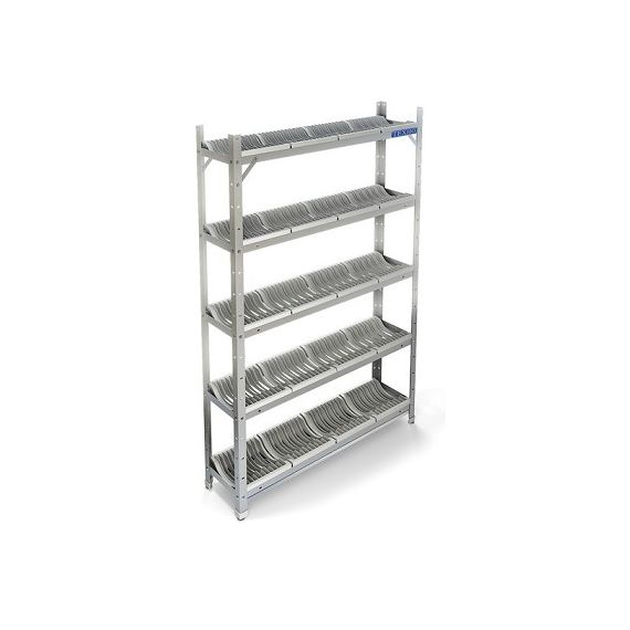 1200х300х1830мм, Стеллаж для сушки посуды c кассетами из пластмассы на 250 тарелок, разборная конструкция на болтовом соединении, каркас из уголка 40х40 толщиной 2мм покрытого порошковой краской серого цвета, полки и поддон из нержавеющей стали марки AISI 304 толщиной 0,8мм. Регулируемые опоры. Стеллаж поставляется в разобранном виде.