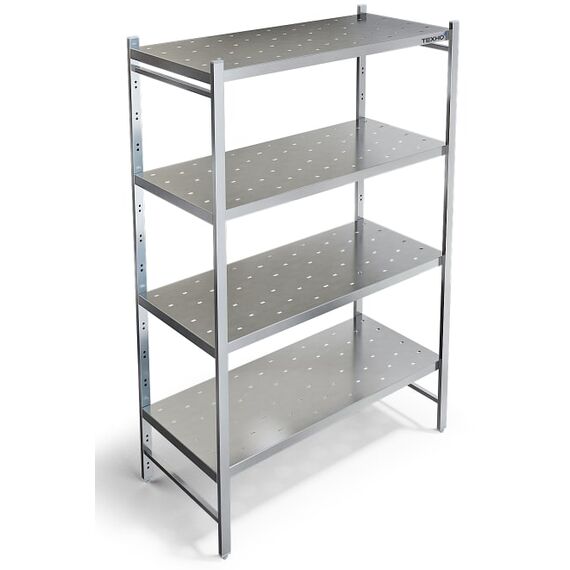 790х410х1820мм, Стеллаж технологический разборный, стойки из трубы 40х20 нержавеющей стали марки AISI 304 толщиной 1,2мм. Четыре перфорированные полки из нержавеющей стали марки AISI 304 толщиной 0,8мм. Расстояние между полками регулируемое с шагом 120мм. Регулируемые опоры. Стеллаж поставляется в разобранном виде.