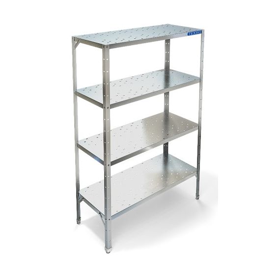 500х600х1820мм, Стеллаж технологический разборный, стойки из уголка 40х40 нержавеющей стали марки AISI 430 толщиной 2мм. Четыре перфорированные полки из нержавеющей стали марки AISI 430 толщиной 0,8мм. Расстояние между полками регулируемое с шагом 50мм. Регулируемые опоры. Стеллаж поставляется в разобранном виде.