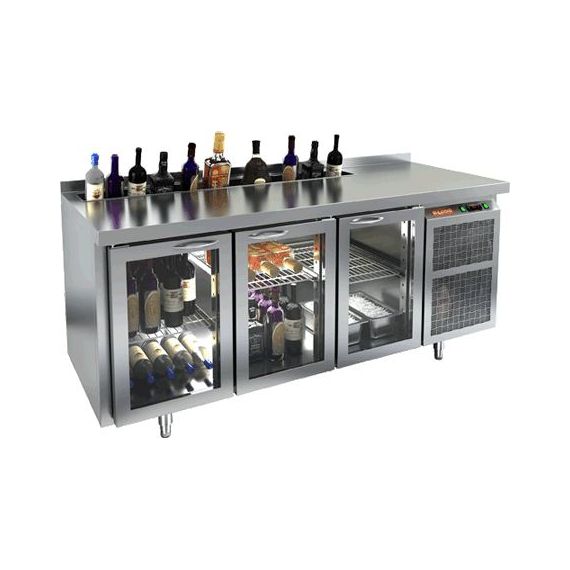 1835х600х850мм, SNG 111 HT V стол охл.(+2+10), 3 распаш.стекл.двери, с ванной для льда под бутылки, 1835х600х850мм