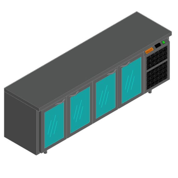 2280х600х850мм, SNG 1111 HT О стол охл. (+2+10), островн., 4 стеклянные двери, 2280х600х850мм