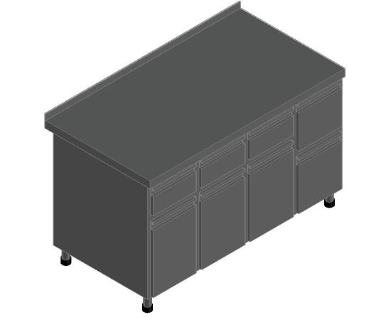 1402х758х908мм, Стол для кофемашины СКМ-7-2 (1400x700x860 мм) 3 выдв. ящика, 1 откидн. ящик, 4 шкаф., вся нерж.