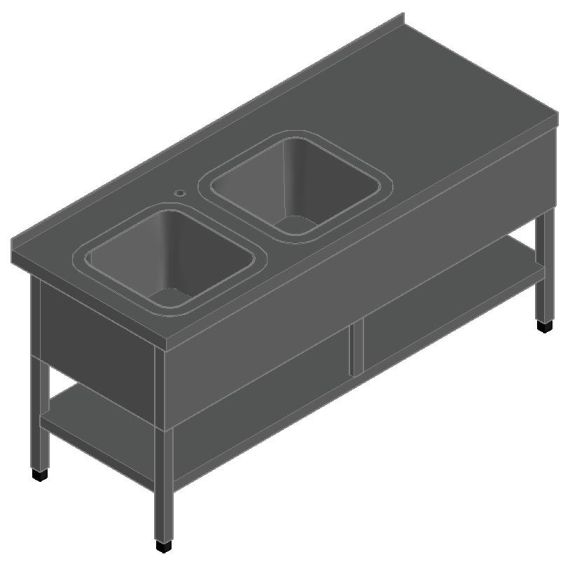 1770х700х860мм, Стол для мойки овощей СМО-7-7 РН (1800x700x860 мм) мойка-мойка-стол, (мойка-500x500x300 мм), вся нерж.