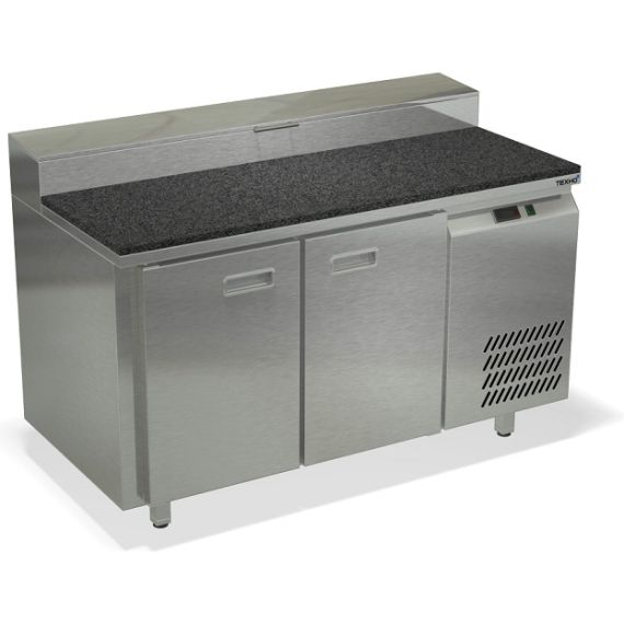 1390х700х850мм, Охлаждаемый стол для пиццы, боковое расположение агрегата. Столешница камень толщиной 20мм, корпус из нержавеющей стали марки AISI 430. Задняя панель и дно из оцинкованной стали. 2 двери. Температурный режим +2...+10, глубина рабочего стола 486 мм, напряжение 220В, мощность 320Вт, внутренний объем стола 350л, в зону под гастроёмкости помещается 7 GN 1/6 глубиной 150мм, полезный объём стола 244л. Компрессор (Испания). Хладон R-134. Петля доводчик (Польша). Полка решетка регулируемая по высоте с шагом - 45 мм, гастронормированная, нагрузка 35кг. Нога опорная круглая, регулировка 50мм (Италия). Поставляется в собранном виде.