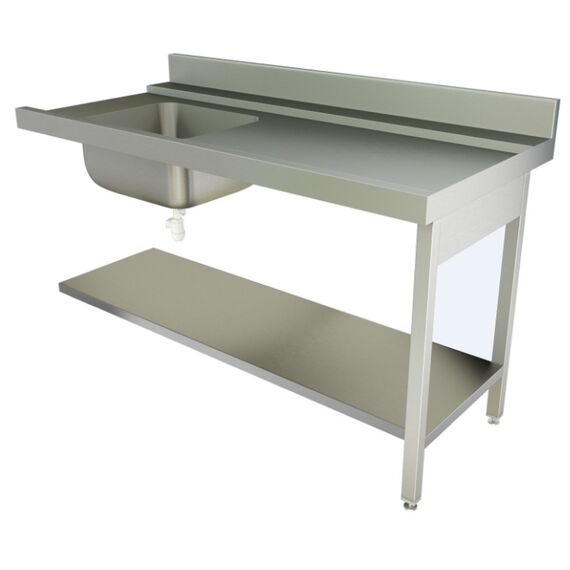 1500х700х850мм, Стол навесной с бортом высотой 70мм для посудомоечной машины Apach. Цельнотянутая емкость размером 500х400х250 из нержавеющей стали марки AISI 304 толщиной 1мм расположена слева, крепление слева. Столешница из нержавеющей стали марки AISI 304 толщиной 1мм. Каркас разборный из трубы 40х40 нержавеющей стали марки AISI 304 толщиной 2мм. Полка из нержавеющей стали марки AISI 430 толщиной 0,8мм. Регулируемые опоры. Стол поставляется в собранном виде.