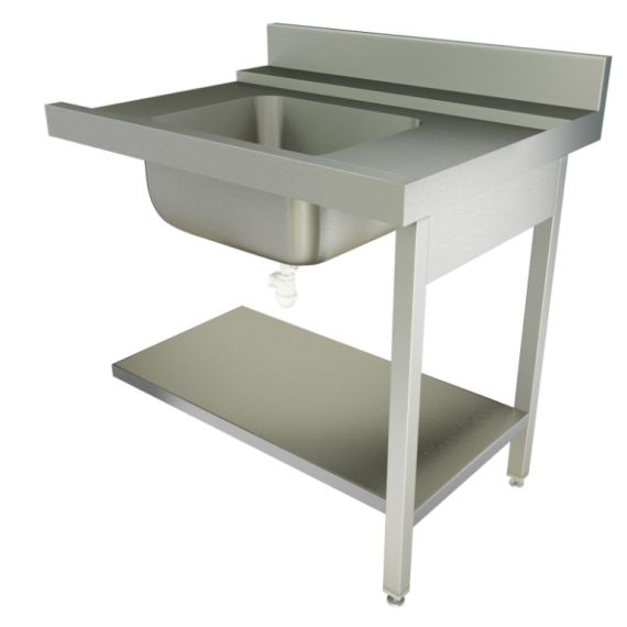 900х700х850мм, Стол навесной с бортом высотой 70мм для посудомоечной машины Apach. Цельнотянутая емкость размером 500х400х250 из нержавеющей стали марки AISI 304 толщиной 1мм расположена слева, крепление слева. Столешница из нержавеющей стали марки AISI 304 толщиной 1мм. Каркас разборный из трубы 40х40 нержавеющей стали марки AISI 304 толщиной 2мм. Полка из нержавеющей стали марки AISI 430 толщиной 0,8мм. Регулируемые опоры. Стол поставляется в собранном виде.