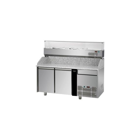 Стол для пиццы Apach APZ02D1+VR4 160 VD с охлаждаемой витриной используется в пиццериях, барах, кафе и на предприятиях быстрого питания для изготовления пиццы и хранения скоропортящихся продуктов. Материал изготовления: корпус и камера – нержавеющая сталь, столешница – гранит. Гастроемкости в комплект не входят. Особенности: Корпус и внутренняя камера из нержавеющей стали Гранитная столешница Функция автоматической оттайки Самозакрывающиеся двери с магнитным уплотнителем Вентилируемое охлаждение Экологически безопасный хладагент R507 Регулируемые ножки Полиуретановая изоляция 40 мм Электронная панель управления Возможна эксплуатация в жарких помещениях (до +43°с и отн. влажности 65%)
