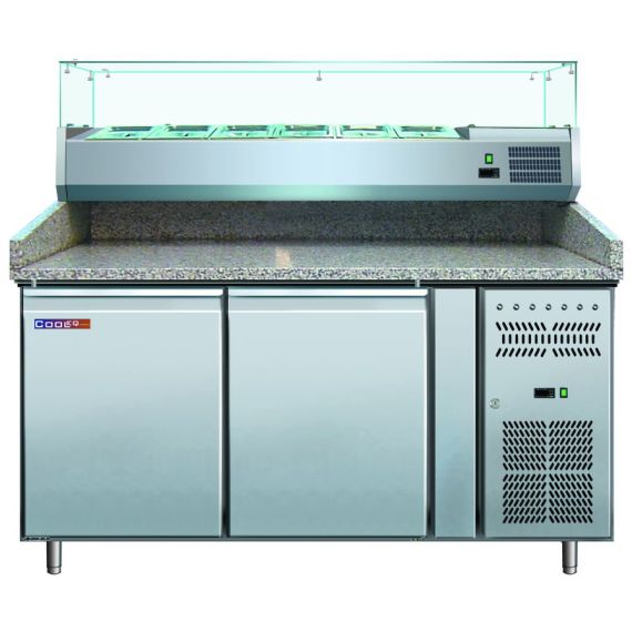 1510х800х1440мм;220В,0,2кВт; 428л; +2/+8; 2 двери, столешн.из гранита, динамическое охлаждение; регулируемые ножки, высота рабочей поверхности 825-865мм; R290. С дополнительной витриной серий VRX вместимостью 5хGN1/3 + 1xGN1/2 глубиной до 150 мм; R600