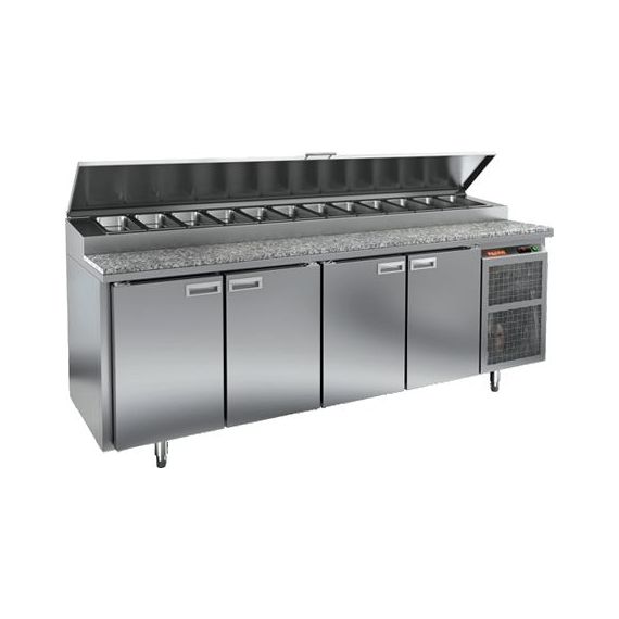 2280х700х850мм, PZ2-1111/GN (1/6H) КАМЕНЬ стол для пиццы охл.(+2+10), 4 двери, 2280х700х850мм, камен. раб.пов.глуб. 486мм