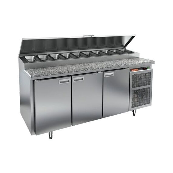 1835х700х850мм, PZ2-111/GN (1/6H) КАМЕНЬ стол для пиццы охл.(+2+10), 3 двери, 1835х700х850мм, камен. раб.пов. глуб. 486мм