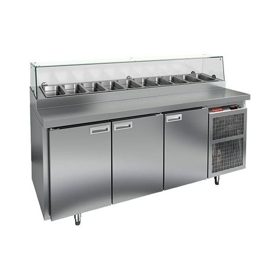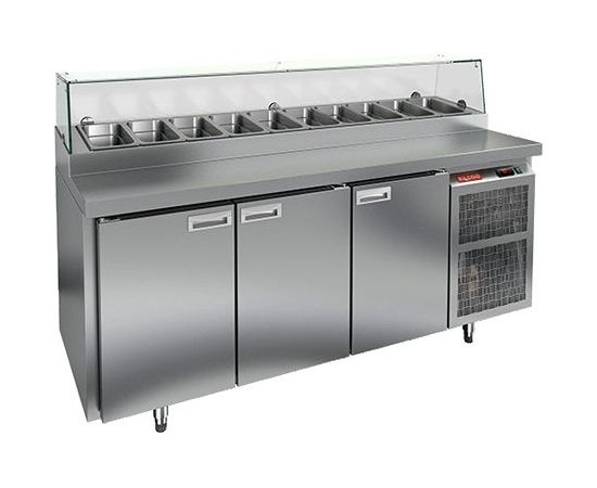 1835х700х1160мм, PZ2-111/GN (1/6H) СО СТЕКЛОМ стол для пиццы охл. (+2+10), 3 двери, 1835х700х1160мм