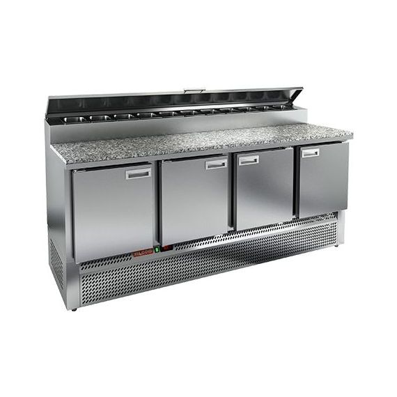 1970х700х850мм, PZE2-1111/GN (1/6H) КАМЕНЬ стол для пиццы охл.(+2+10), 4 двери, 1970х700х850мм, глуб. камен. раб.пов. 486мм, ниж.распол.агрегата