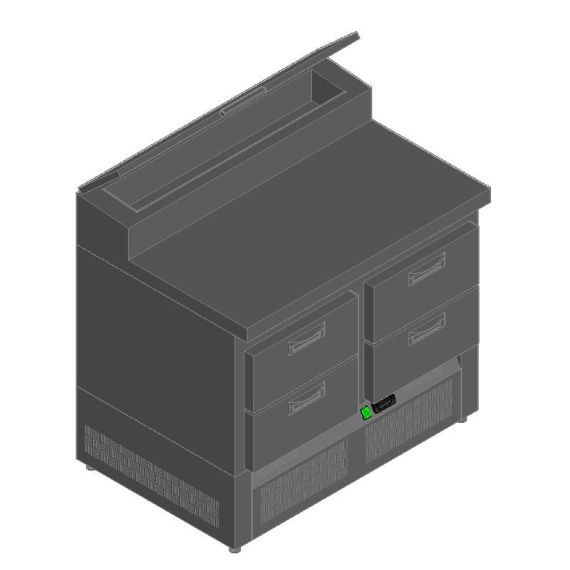 1000х700х850мм, PZE2-22/GN (1/6H) стол для пиццы охл. (+2+10), 4 ящика, 1000х700х850мм, глуб.раб.пов. 486мм, ниж.распол.агрегата