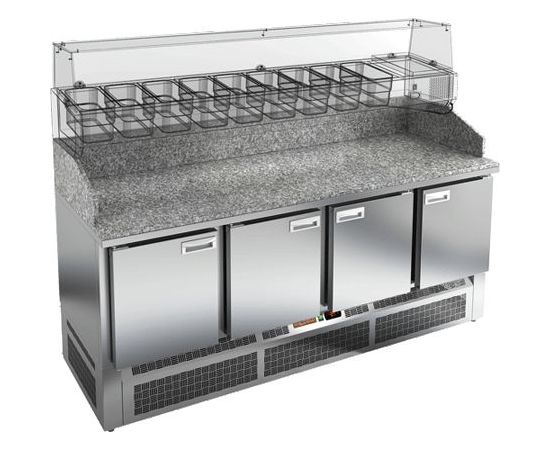1970х600х1050мм, PZE3-1111/SN КАМЕНЬ стол для пиццы охл. (+2+10), 4 двери, с бортом с 3х сторон, 1970х600х1050мм