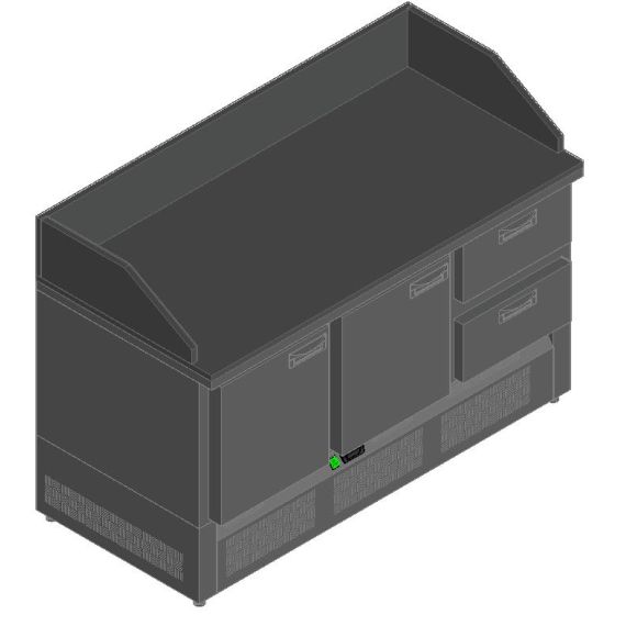 1485х700х1050мм, PZE3-112/GN КАМЕНЬ стол для пиццы охл.(+2+10), 2 двери, 2 ящика, с бортом с 3х сторон, 1485х700х1050мм