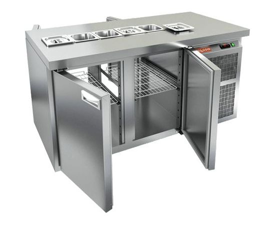 1390х700х850мм, SL2T-11/GN (1/6) БЕЗ КРЫШКИ стол охл.(+2+10), 2 секции, по 2 двери с 2х сторон, 1390х700х850мм