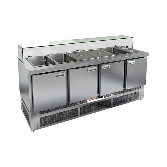 1970х700х850мм, SLE3-1111GN НИЗКОЕ СТЕКЛО стол для салатов, охл. (+2+10), 4 двери, 1970х700х1315мм, ниж.распол.агрегата