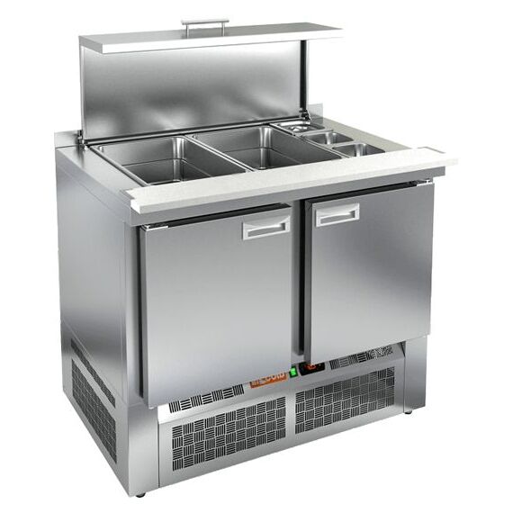 1000х750х850мм, SLE3-11GN ПОЛИПРОПИЛЕН С КРЫШКОЙ стол для салатов, охл. (+2+10), 2 двери, 1000х750х850мм, ниж.распол.агрегата
