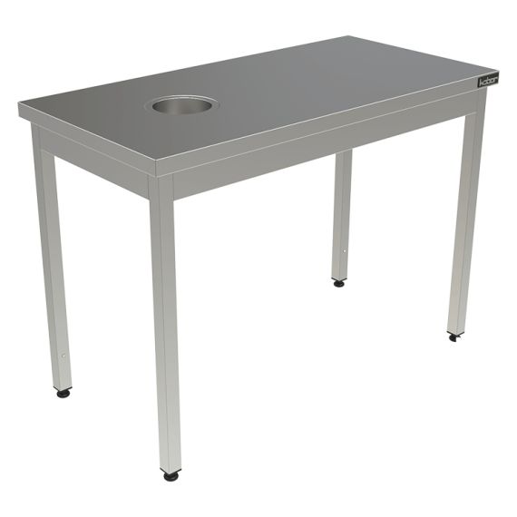 1500х700х870мм, Стол для сбора пищевых отходов (столешница – нерж. сталь aisi 430, усиление ЛДСП, каркас нерж. труба 40х40, отв. диам. 150 мм.)