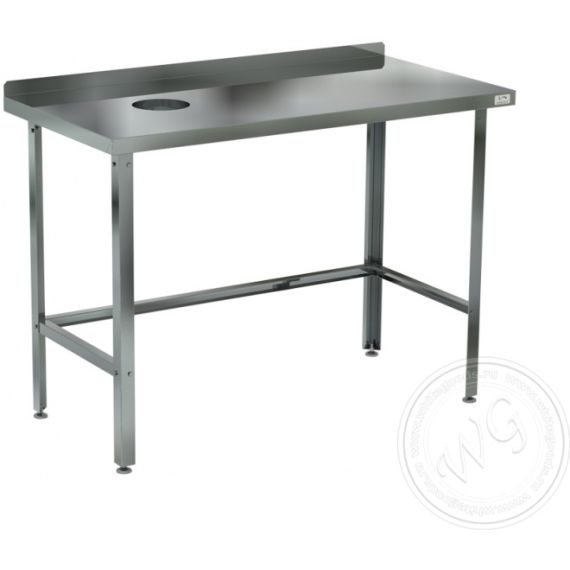 1200х700х870 Стол для сбора пищевых отходов с бортом (столешница – нерж. сталь aisi 430, усиление ОСП, каркас уголок нерж. сталь, отв. диам. 150 мм.)