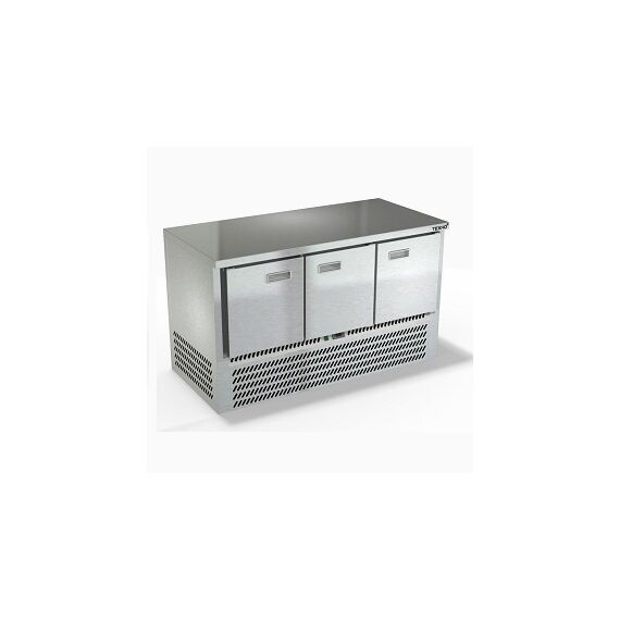 1485х700х850мм, Охлаждаемый стол без борта, нижнее расположение агрегата. Столешница и корпус из нержавеющей стали марки AISI 430. Задняя панель и дно из оцинкованной стали. 3 двери. Температурный режим -2...+10, напряжение 220В, мощность 220Вт, внутренний объем стола 340л, полезный объем стола 210л. Компрессор (Испания). Хладон R-134. Петля доводчик (Польша). Полка решетка регулируемая по высоте с шагом - 45мм, гастронормированная, нагрузка 35кг. Нога опорная, регулировка 25мм. Поставляется в собранном виде.