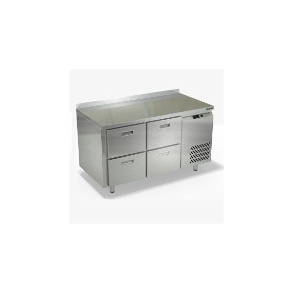 1390х700х850мм, Охлаждаемый стол с бортом высотой 50мм, боковое расположение агрегата. Столешница и корпус из нержавеющей стали марки AISI 430. Задняя панель и дно из оцинкованной стали. 4 ящика гастронормированных нагрузка по 35кг на ящик, направляющие с доводчиками (Австрия). Температурный режим -2...+10, напряжение 220В, мощность 220Вт, внутренний объем стола 350л, полезный объем стола 130л. Компрессор (Испания). Хладон R-134. Нога опорная круглая, регулировка 50мм (Италия). Поставляется в собранном виде.