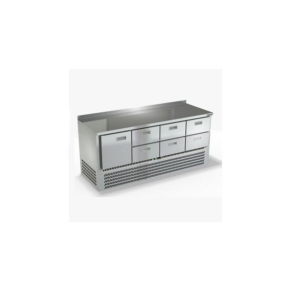 1970х600х850мм, Охлаждаемый стол с бортом высотой 50мм, нижнее расположение агрегата. Столешница и корпус из нержавеющей стали марки AISI 430. Задняя панель и дно из оцинкованной стали. 1 дверь, 6 ящиков гастронормированных нагрузка по 35кг, направляющие с доводчиками (Австрия). Температурный режим -2...+10, напряжение 220В, мощность 460Вт, внутренний объем стола 410л, полезный объем стола 150л. Компрессор (Испания). Хладон R-134. Петля доводчик (Польша). Полка решетка регулируемая по высоте с шагом - 45мм, гастронормированная, нагрузка 35кг. Нога опорная, регулировка 25мм. Поставляется в собранном виде.