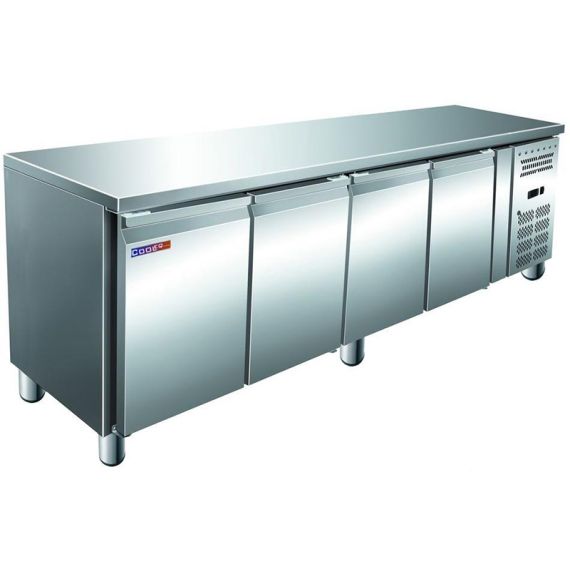 2230х700х860 мм; 220В, 0.23кВт; 616л; -2/+8; 4 двери; столешн.нерж.сталь; б/борта; динамическое охлаждение; регулируемые ножки, высота рабочей поверхности 835-875мм; R290, 108г