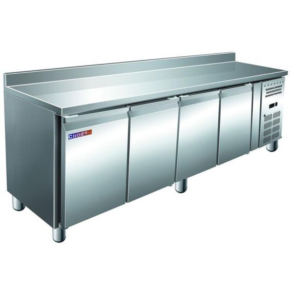 2230х700х960 мм; 220В, 0.23кВт; 616л; -2/+8; 4 двери; столешн.нерж.сталь; с бортом; динамическое охлаждение; регулируемые ножки, высота рабочей поверхности 835-875мм; R290. Бортик 100x15мм
