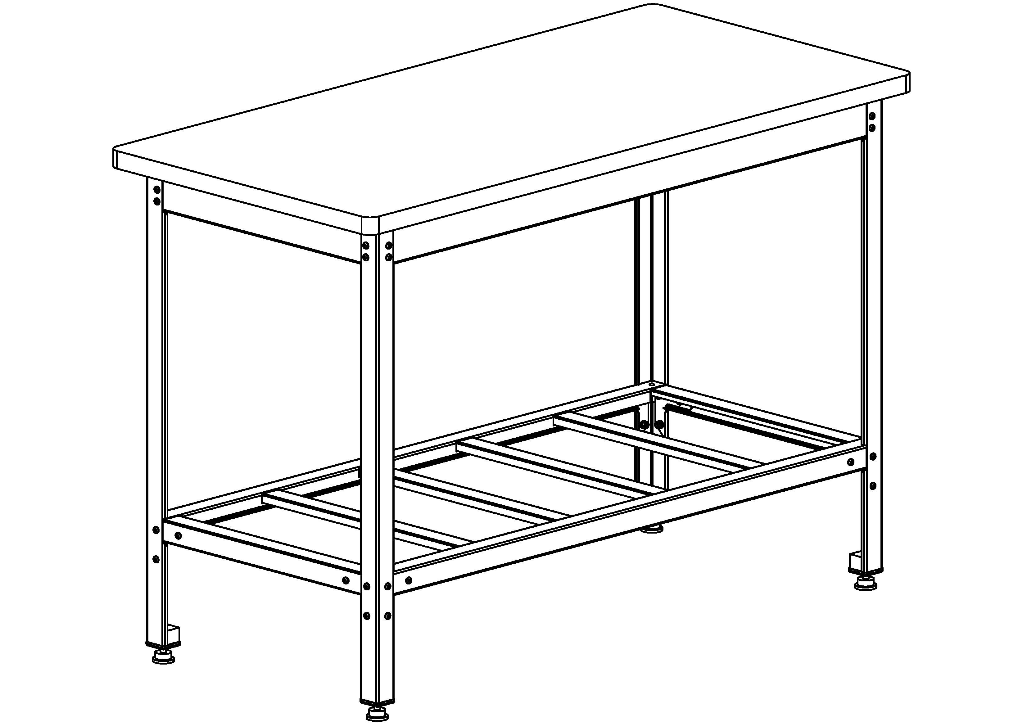 Серия СКД3: стол кондитерский имеет разборную конструкцию, столешница без борта, выполнена из наборного бука толщиной 40мм. Каркас выполнен из профильных элементов нерж. стали марки AISI 430 толщиной 1,2мм, полка решётчатая. Стол оснащен регулируемыми по высоте опорами.