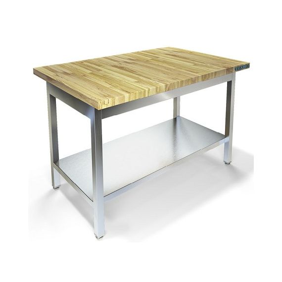 700х800х850мм, Стол кондитерский со столешницей бук толщиной 40мм. Каркас разборный из трубы 40х40 нержавеющей стали марки AISI 304 толщиной 1,2мм. Полка сплошная из нержавеющей стали марки AISI 430 толщиной 0,8мм. Регулируемые опоры. Стол поставляется в разобранном виде.