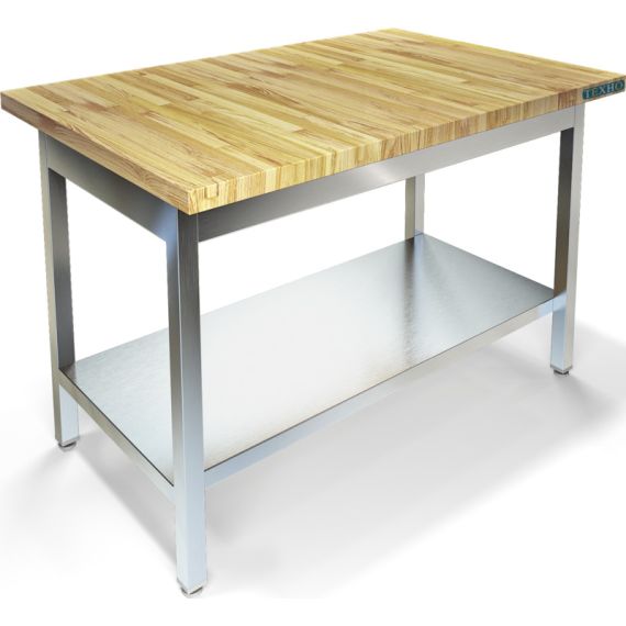 1100х800х850мм, Стол кондитерский со столешницей бук толщиной 40мм. Каркас разборный из трубы 40х40 нержавеющей стали марки AISI 430 толщиной 1,2мм. Полка сплошная из нержавеющей стали марки AISI 430 толщиной 0,8мм. Регулируемые опоры. Стол поставляется в разобранном виде.