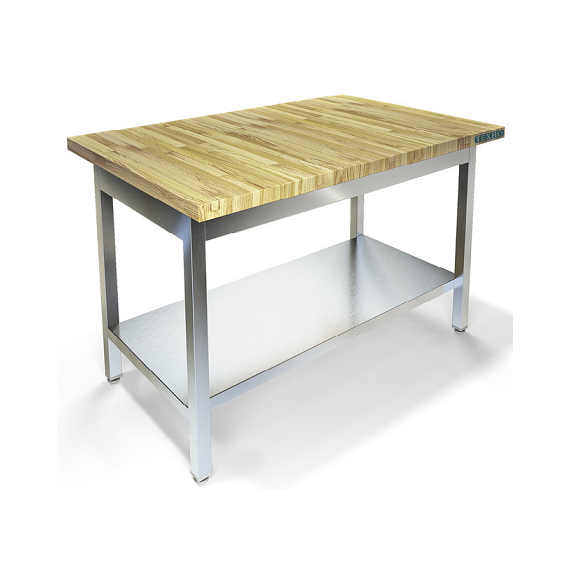 1500х800х850мм, Стол кондитерский со столешницей бук толщиной 40мм. Каркас разборный из трубы 40х40 нержавеющей стали марки AISI 430 толщиной 1,2мм. Полка сплошная из нержавеющей стали марки AISI 430 толщиной 0,8мм. Регулируемые опоры. Стол поставляется в разобранном виде.