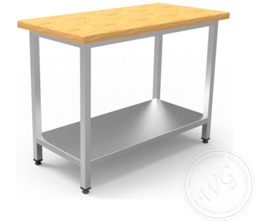 1200х700х870мм.,Стол-кондитерский (столешница - бук. толщ. 40 мм, каркас нерж. труба 40х40, полка, разборный)