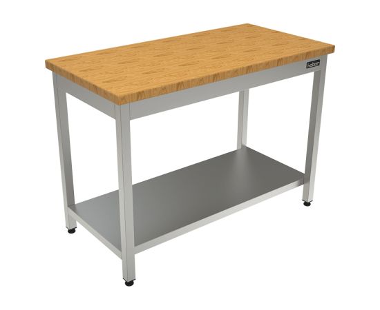 1500х800х870 Стол-кондитерский (столешница - бук. толщ. 40 мм, каркас нерж. труба 40х40, полка, разборный)